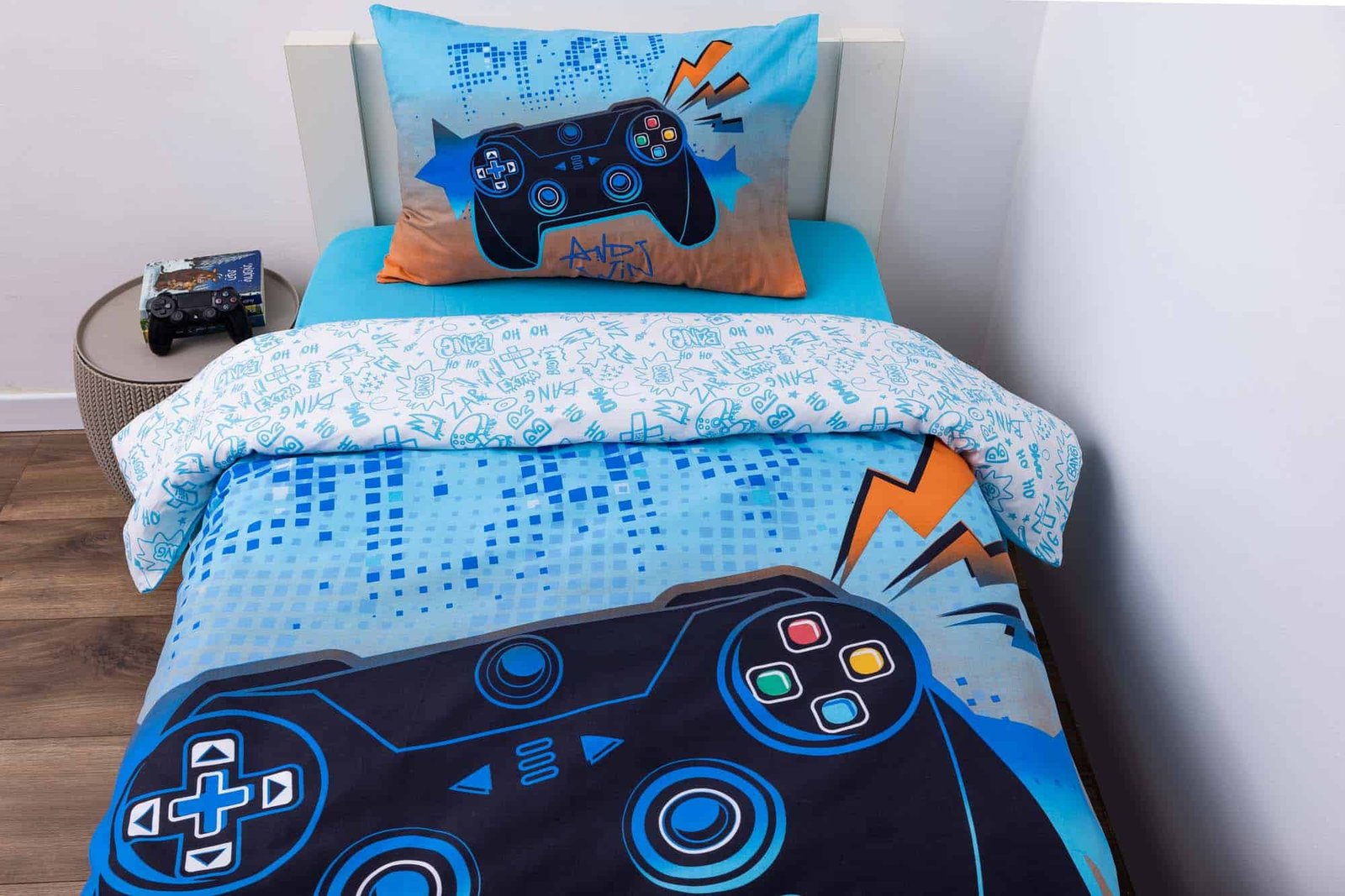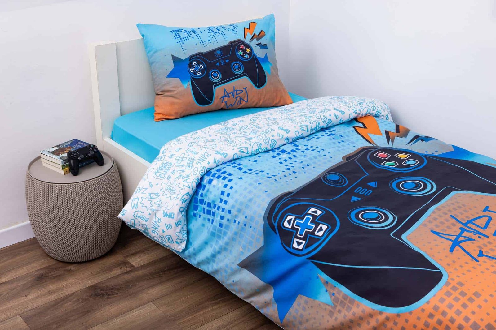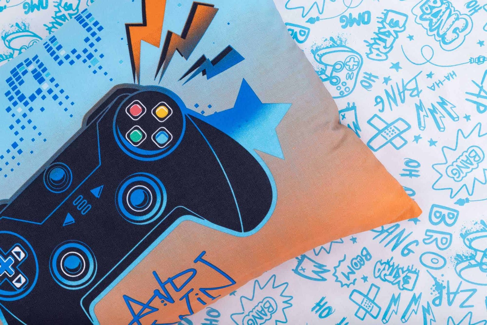 סט המצעים GAMING 01-067 הוא הבחירה המושלמת לילדים ולנוער שאוהבים גיימינג, טכנולוגיה ועיצובים מלאי אנרגיה. הדפסי הגיימינג הבולטים — קונטרולרים, אייקונים וזוויות צבעוניות — מעניקים לחדר אופי צעיר, עדכני ומלא חיים, ומכניסים אווירה של משחק וכיף לכל חלל.